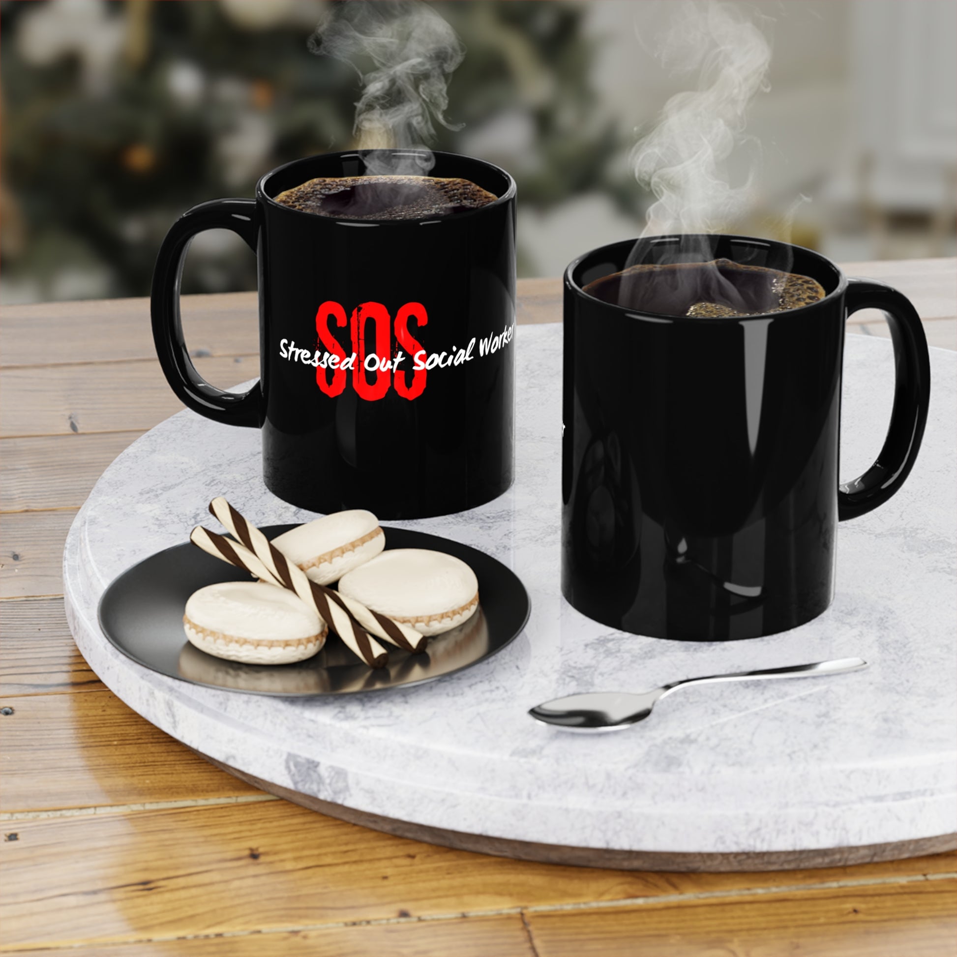 SOS Black Coffee Mug, 11oz